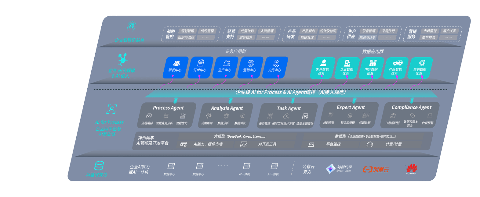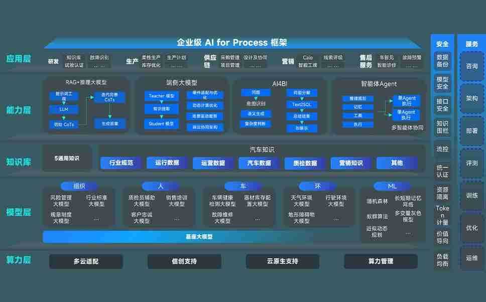 90.cc问学智车解决方案是一套基于AI技术的汽车行业智能化系统,,,覆盖从底层算力到顶层AI应用的全栈方案。。。。方案由算力层、、、模型层和应用层组成:算力层,,方案支持多种一体机配置,,,,具备云端灵活部署、、多云适配以及动态优化计算资源的能力;模型层,,90.cc问学平台版提供了企业级AI应用一站式构建与管理平台,,,,支持基于后训练强化技术的汽车企业专属模型的训练、、、评测和运营;应用层,,,,90.cc问学DeepSeek版提供包括超级员工、、智能招采、、、智能营销、、智能客服、、、、AI for BI等一系列解决方案,,,,可助力汽车行业实现数字化转型,,,,让管理更智能、、、响应更敏捷。。