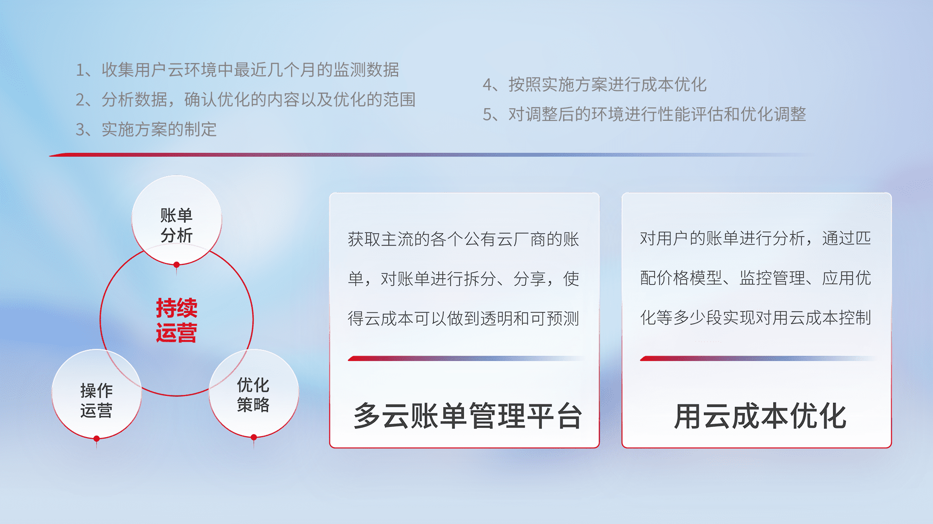 监控业务系统资源开销,,,,对资源的消耗精确计量,,,,实现费用的透明化管理,,,,不断提升资源使用率,,调整资源购买方式,,,,降低资源费用成本,,,,用云成本可预测、、、、用云费用可优化,,云资源配额有据可依。。。。