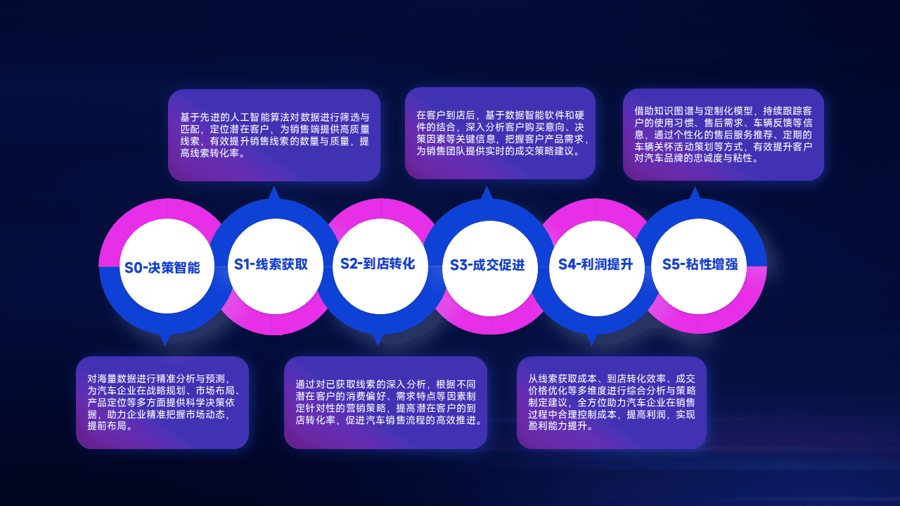 通过拓宽潜在客户来源、、、、优化线索分配并提高到店转化率,,,以增强销售效率。。。。同时,,,利用线索数据不断优化分析模型,,,,有效提升转化率,,,扩大营销影响力。。